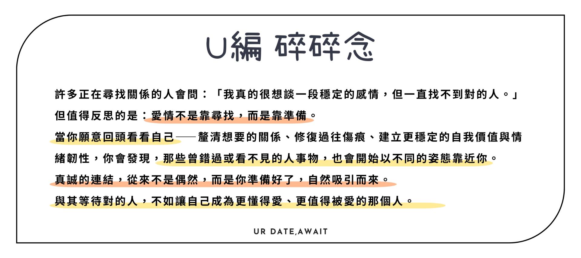 其實,問題不在於「那個人還沒出現」,而是在等待的過程中,我們是否忘了成為更好的自己。
